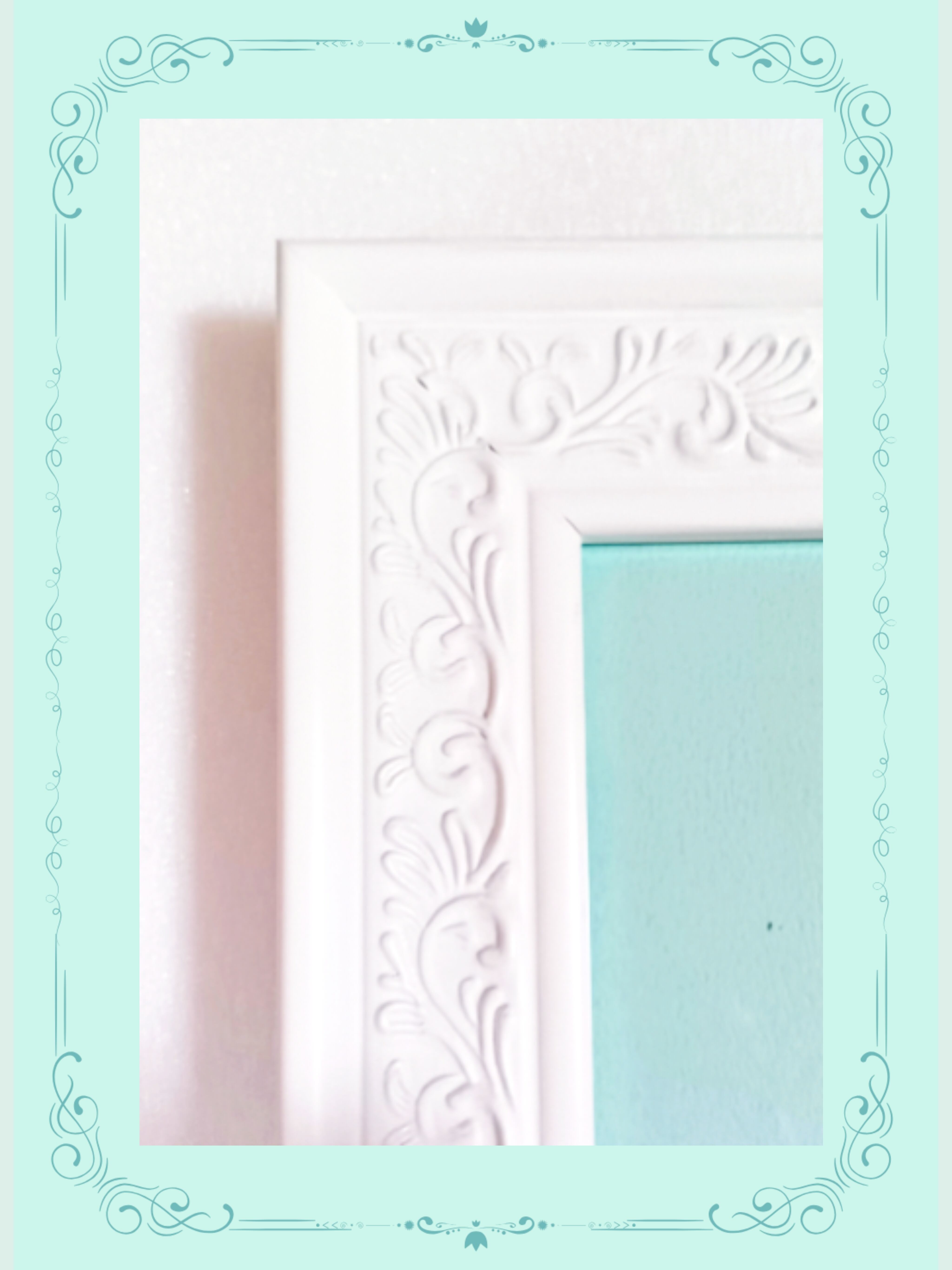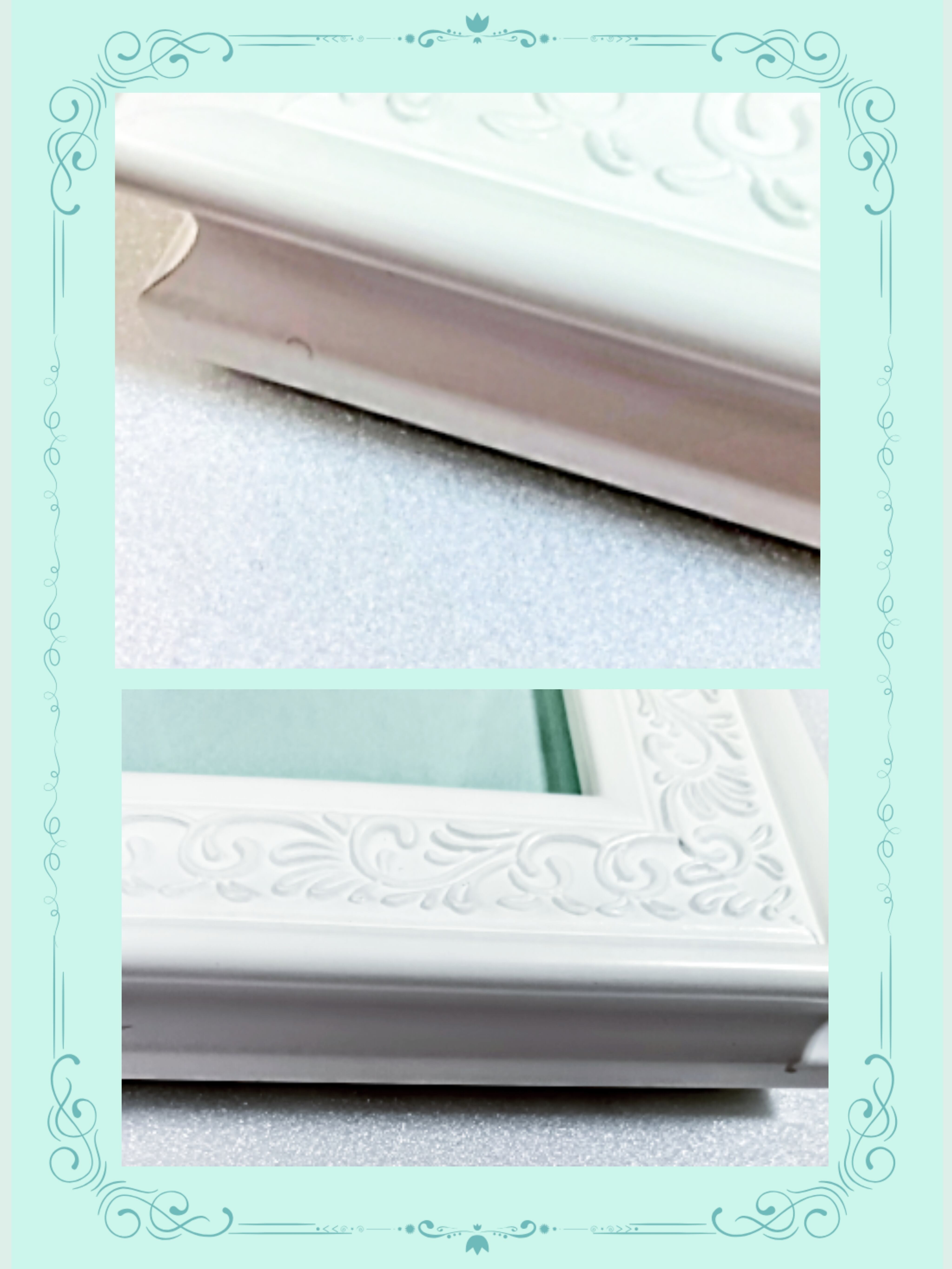 淡いグリーン色のマットとアンティーク模様が美しいホワイト額入り