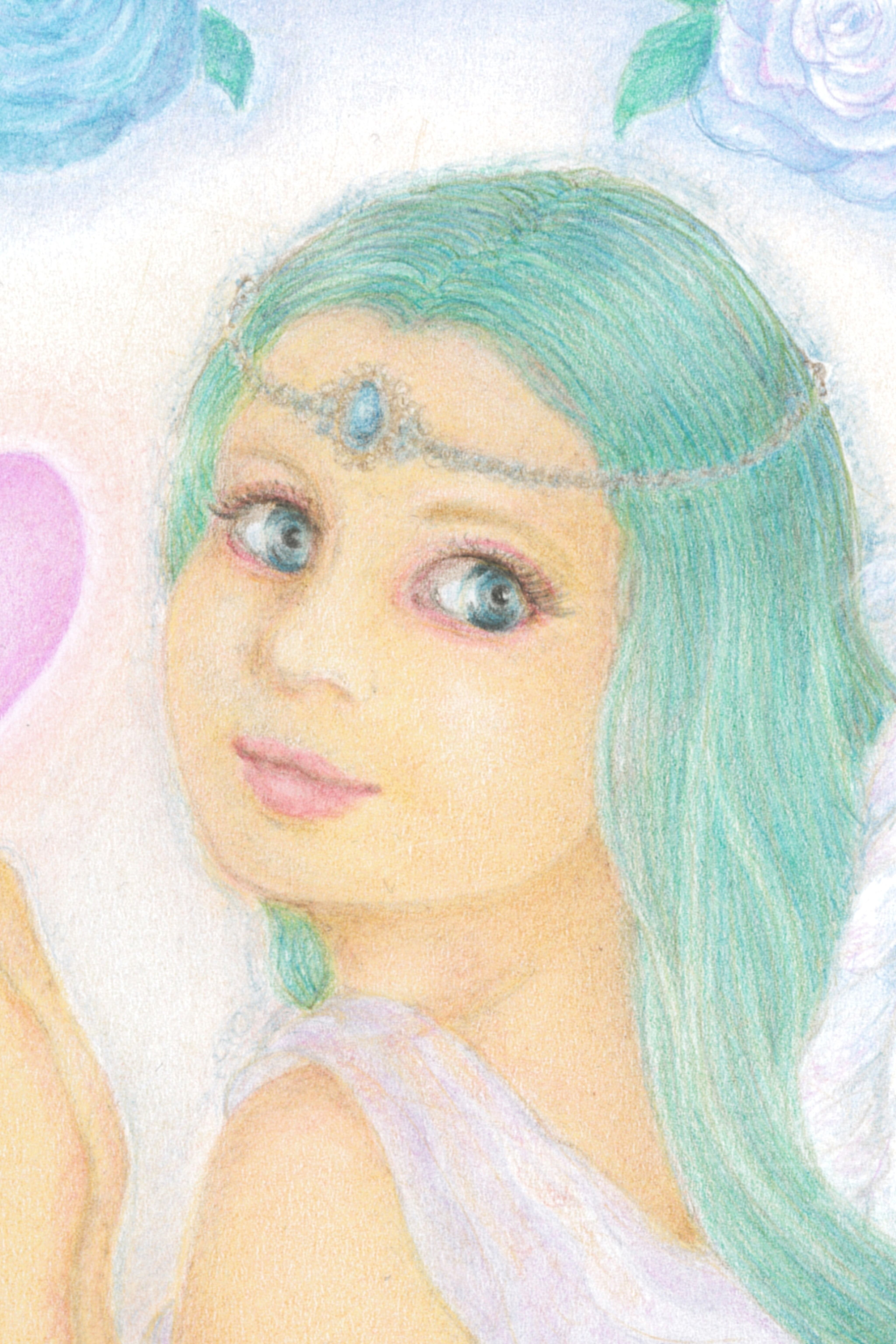 原画の写真では少し強めに発色して見えますが、実物には色鉛筆画独特のかすれがあります