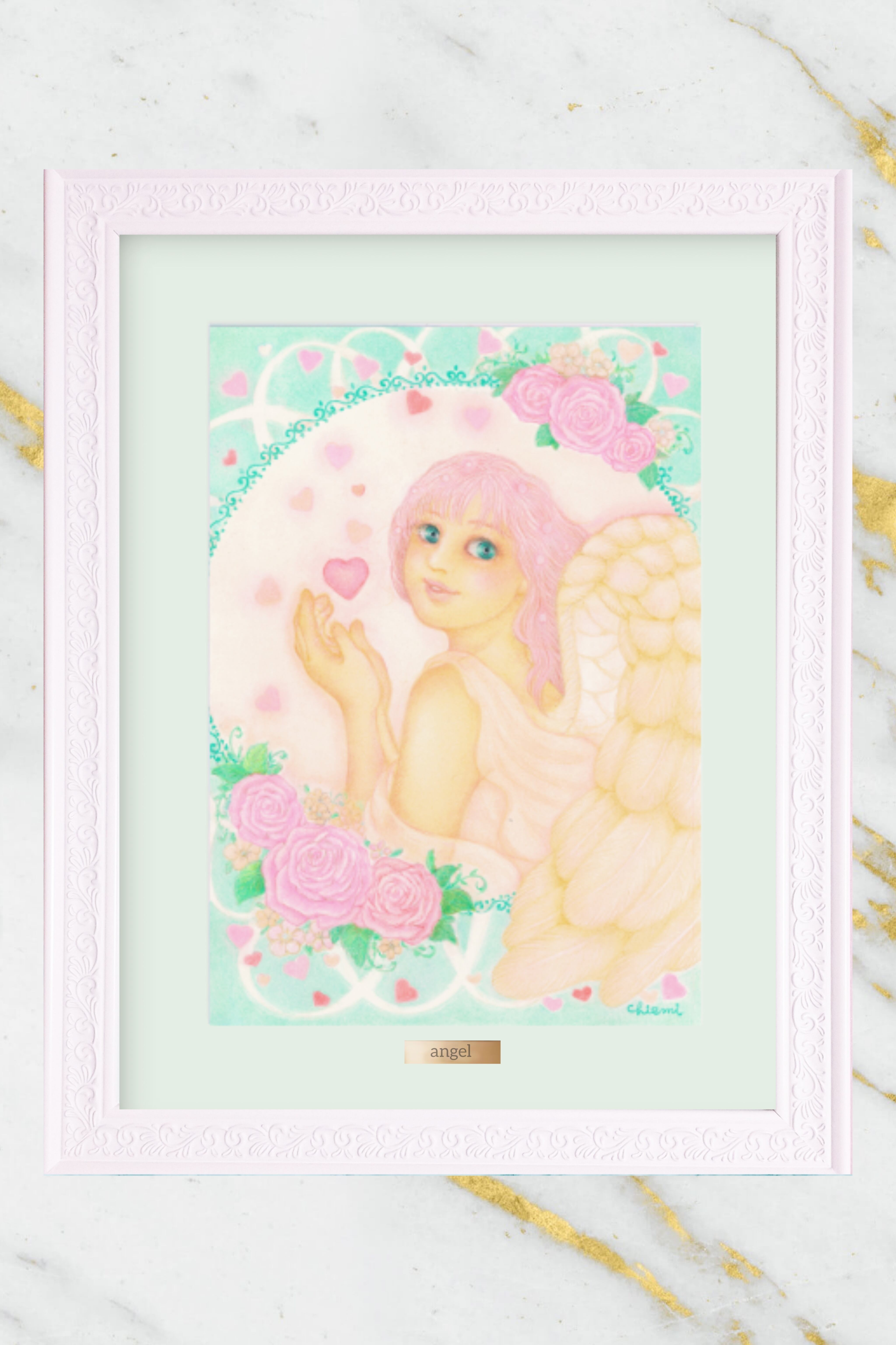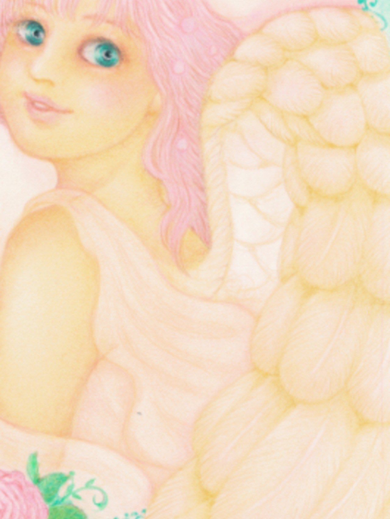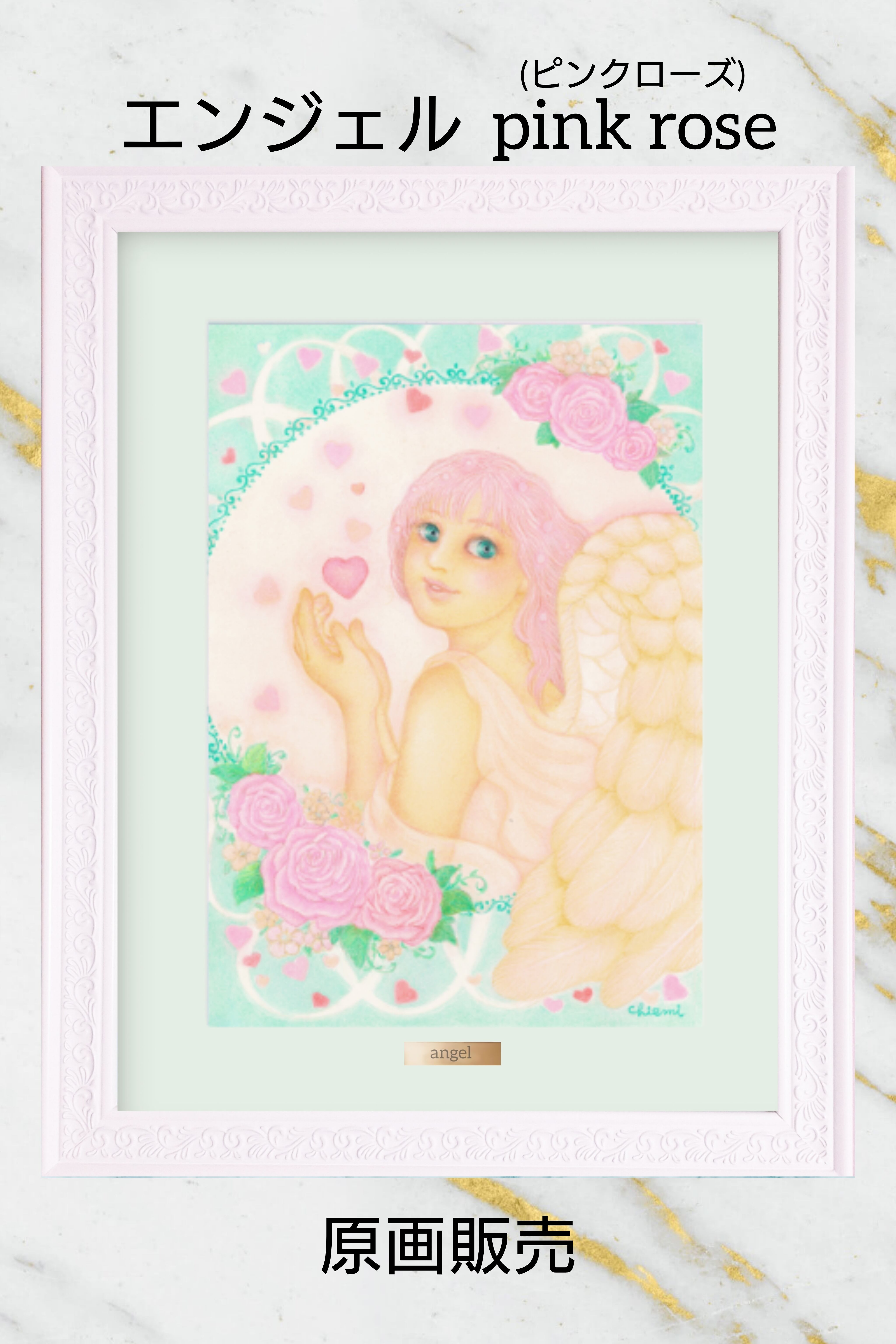 かわいいピンク色の薔薇と笑顔のエンジェルが
