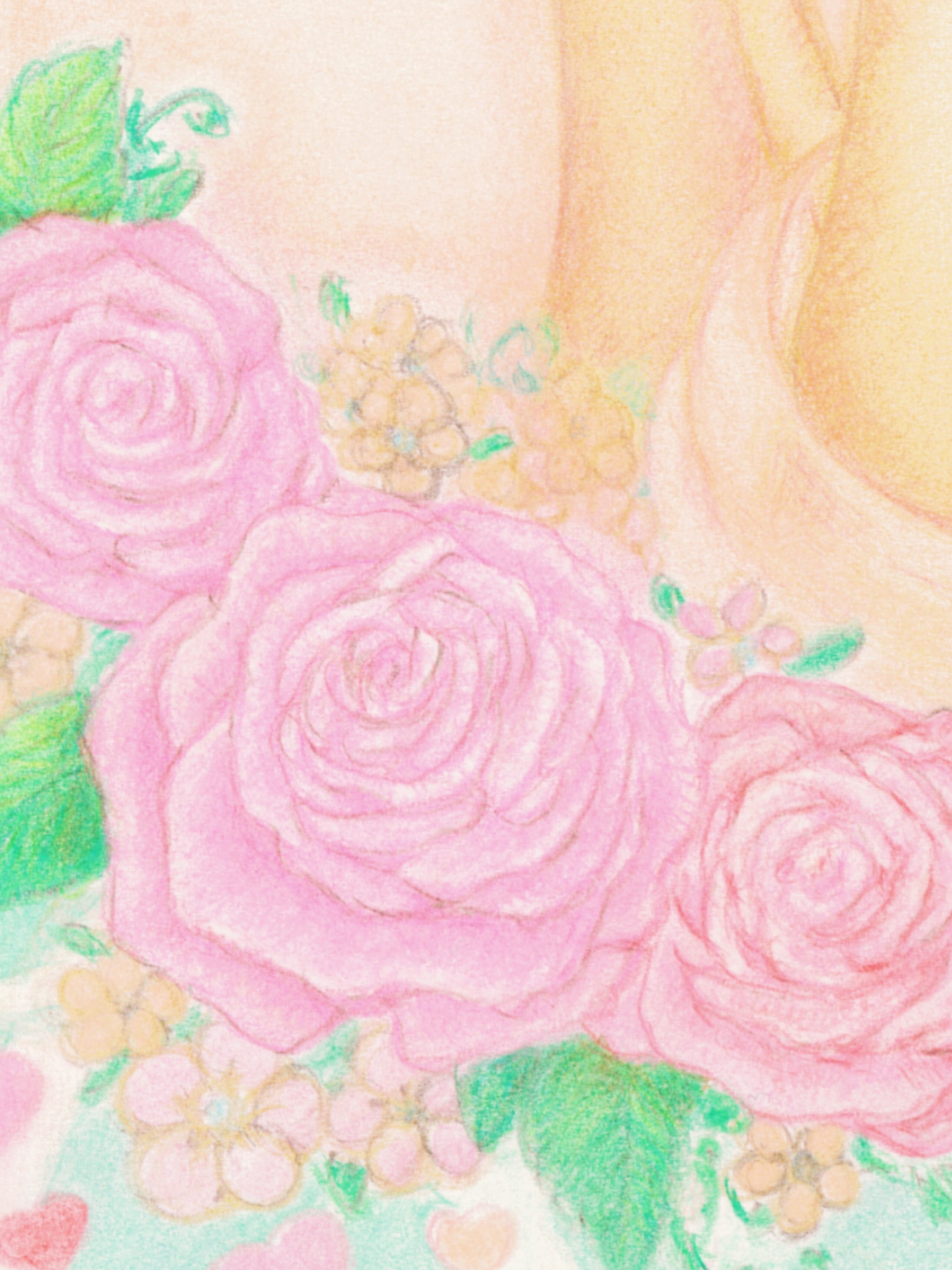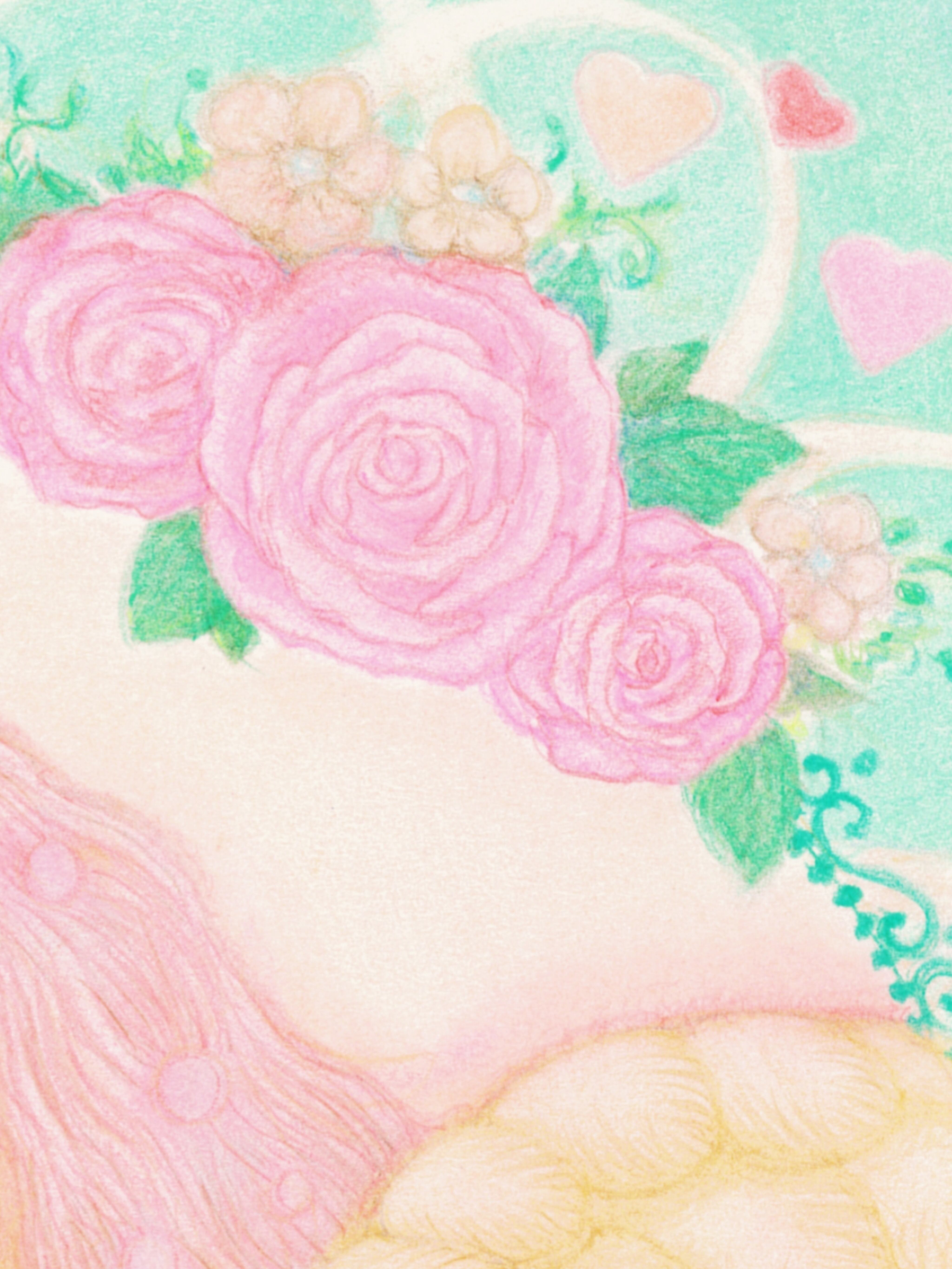 原画の写真では少し強めに発色して見えますが、実物には色鉛筆画独特のかすれがあります